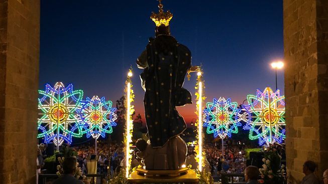 - Ore 20.30 – Solenne Processione dei credenti. Al rientro dalla processione si assisterà ad una suggestiva fiaccolata, offerta dalla Famiglia Manco di Alezio.