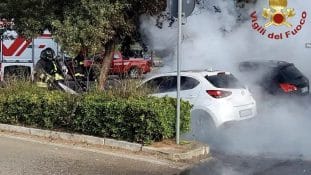 Bruciano due auto in Piazza Muratore a Lecce, fiamme domate dai Vigili del Fuoco