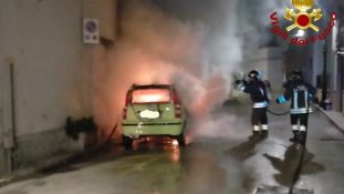 Auto in fiamme nella notte a Carmiano, intervento dei Vigili del Fuoco in Piazza Assunta
