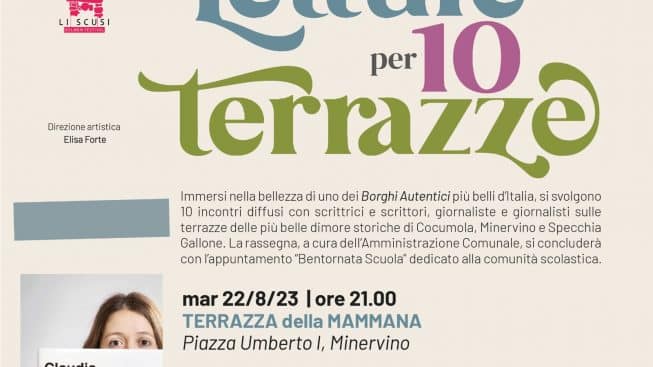 “Ultimo tratto di strada per il viaggio estivo delle 10 letture per 10 terrazze e già si possono tirare le somme di una scommessa vinta, di una scelta alta, in tutti i sensi, che ha portato la lettura, il confronto la scoperta e il dialogo con persone di grande carisma e storie necessarie su scorci inesplorati dei nostri tre centri”, dichiara il sindaco Ettore Caroppo. E aggiunge: “Ringrazio Elisa Forte che ne ha curato la direzione artistica per il contributo qualificante alla nostra idea: ciò che è stata un’intuizione azzeccata dell’estate 2022 è divenuto un format originale, entusiasmante e potente nell’estate 2023 grazie alla sua professionalità e alla sua intensità umana. Sono certo che 10 letture per 10 terrazze, come tutte le altre sezioni de Li Scusi Dolmen Festival troverà negli anni a venire ancora più soddisfazione e riconoscimento”.