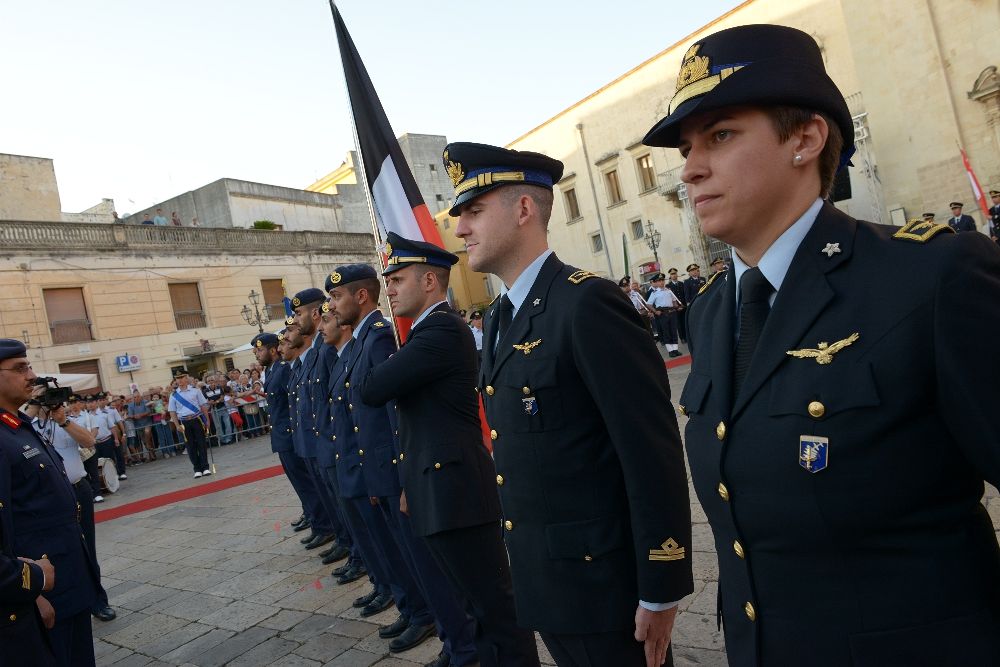 A differenza degli scorsi anni la location non è stata la sede dell’aeroporto, bensì, per volere dell’Amministrazione Comunale, una piazza pubblica, Piazza San Pietro Galatina, dove, nella giornata di ieri, alla presenza del Sottosegretario di Stato alla Difesa, Angelo Tofalo; del Capo di Stato Maggiore dell’Aeronautica Militare Generale di S.A. Alberto Rosso; del Sindaco Marcello Amante e delle autorità civili e militari, si è svolta la cerimonia di consegna delle “Aquile Turrite”, simbolo del brevetto di pilota militare, appuntata a sei allievi italiani, sette della Kuwait Air Force e due della Republic of Singapore Air Force.