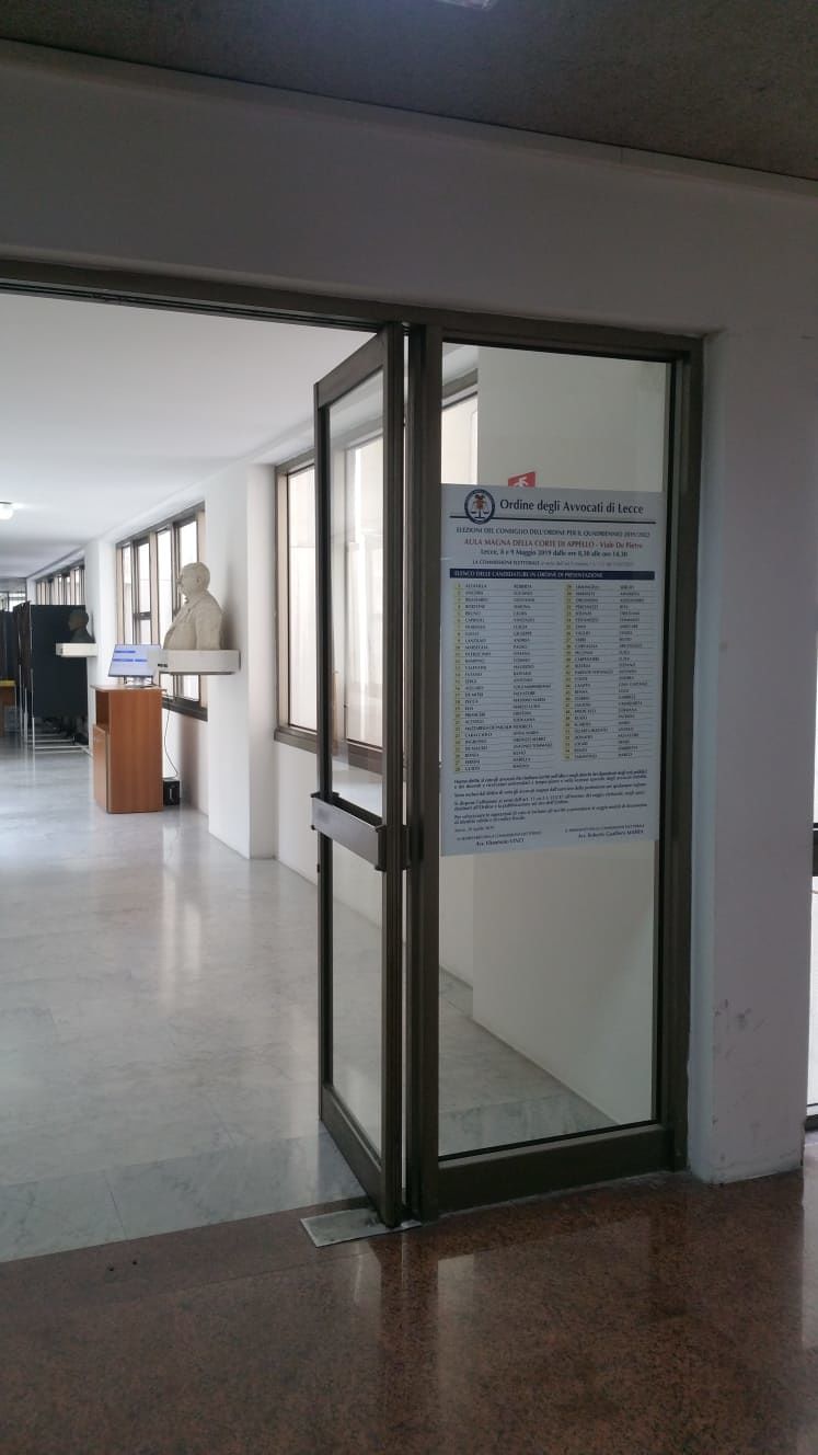 Le urne saranno aperte, in entrambe le giornate, dalle 8.30 alle 14.30, presso l’aula magna “Vittorio Aymone” della Corte d’Appello del Tribunale di Viale de Pietro, a Lecce.