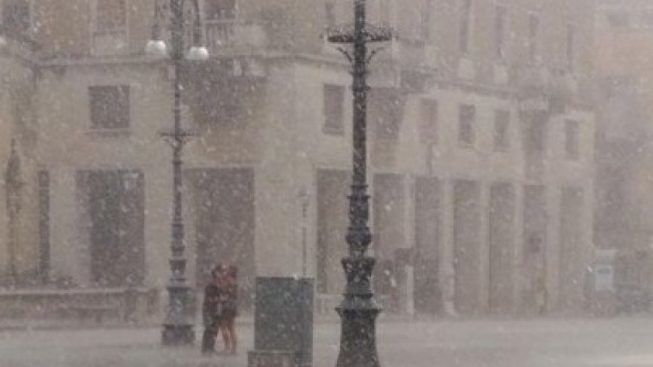 «Mentre tutti dal diluvio si riparano sotto il porticato, una coppia si prende per mano, lentamente, passeggiando arriva sul piazzale e si bacia tra i sorrisi della gente. Qualcuno applaude, molti fotografano. Ho una sensazione positiva, di libertà. Hanno trasformato un contrattempo in un atto d'amore. Non li conosco, ma li trovo bellissimi», ha scritto il fotografo. Il resto lo ha fatto la rete, che ha condiviso migliaia di volte questo bellissimo momento e ha incuriosito talmente tanto che è scattata la caccia ai «fidanzati di Lecce».