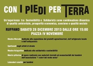 Con i piedi per terra è il luogo delle proposte, delle idee e delle soluzioni che valorizzano non solo l’operato dei maestri produttori agricoli e dei maestri artigiani locali ma anche la dimensione sociale del lavoro.L’iniziativa, in sinergia con il tradizionale appuntamento di Campagna Amica,promossa da Coldiretti, si propone come strumento di promozione valorizzazione e commercializzazione dei prodotti del comparto agricolo agroalimentare e artigianale è darà visibilità alla tradizione, alla creatività e alla innovazione. L’iniziativa,però,è anche e soprattutto il tentativo di un innovativa esperienza di acquisto sostenibile e solidale al fine di diffondere la cultura della sostenibilità e della solidarietà nella difficoltà di un momento storico in cui siamo chiamati non solo a mettere in campo le risorse migliori ma a dare prova di coesione, prestando attenzione a non consumare le risorse per le generazioni future.