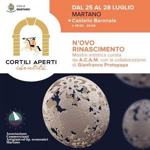 A.C.A.M., nell’ambito dell’edizione 2019 di Cortili Aperti – Identità, a Martano dal 25 al 28 luglio, presenta “N’ovo Rinascimento”, una rassegna artistica curata da Gianfranco Protopapa.