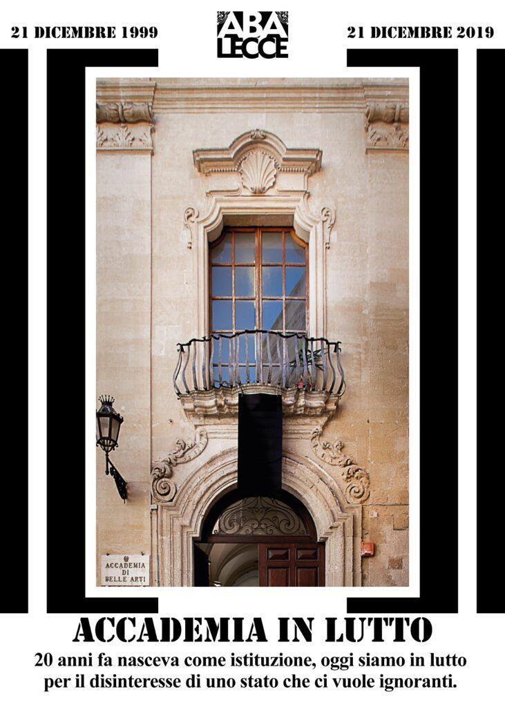 Una situazione che è diventata insostenibile, anche perché il Ministero è stato costretto a bloccare per cinque mesi il reclutamento per trovare un’alternativa a questi contratti che di stabile hanno molto poco. Stando così le cose non si sono trovati i docenti esterni e l’avvio delle lezioni è slittato rendendo il primo semestre un vero e proprio incubo. Per questo, l’Accademia delle Belle Arti di Lecce ha aderito all’iniziativa “accademia in lutto”, partita da Foggia. Un modo per alzare la voce, per farsi sentire, per chiedere al Governo quell’attenzione che meritano.