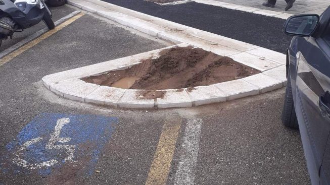 Nella speranza che si tratti soltanto di un errore momentaneo e che nella ridisegnazione degli stalli si trovi la possibilità di realizzare quello per disabili, non si può fare a meno di notare l’eccessiva originalità di quella aiuola. Una piccola mezzaluna che potrà ospitare qualche piccola pianta, ma nulla di più. Ma ripetiamo, è forse soltanto il frutto di una svista momentanea e presto i cittadini disabili recupereranno il parcheggio perduto.