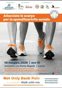 Non è “solo” mal di schiena, come qualcuno può semplicisticamente pensare. Perciò in occasione della Giornata Mondiale dell’axSpA, Apmarr scende in piazza a Lecce con una passeggiata solidale per accendere i riflettori su una patologia che colpisce 40.000 italiani, chiedendo diagnosi precoci e diritti certi.