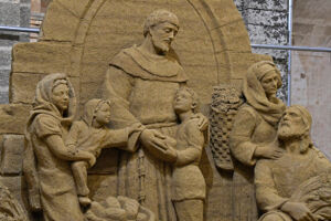 Sarà l’occasione per visitare le meravigliose sculture esposte nel Chiostro degli Agostiniani che rappresentano un’ambientazione particolare e originale della Natività, frutto del genio artistico e del talento di Leonardo Ugolini, Mac David, Sue McGrew, Marielle Heessels e Sudarsan Pattnaik (guarda il video durante la preparazione dei lavori).