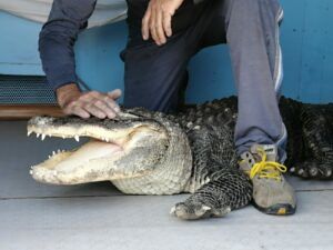 Nello zoo insiste un acquario da 200 quintali di acqua con all’interno 2 squali grigi della barriera corallina di 2,5 metri ciascuno. E poi ci sono alligatori, caimani, anaconda, boa, pitoni, tartarughe e piranha carnivori. E ancora tanti animali da cortile: oche, capre tibetane, anatre pinguino, papere, galline australiane.
