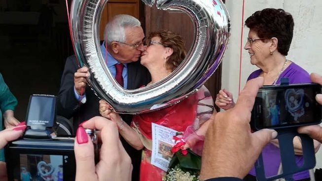 La sposa è Anna Maria Pede, 75 anni, vedova da molti anni, vive a Castromediano, ha tre bellissime figlie; lo sposo è Osvaldo Leuzzi, 84 anni, vedovo anche lui, abita a Lecce ed ha una figlia.