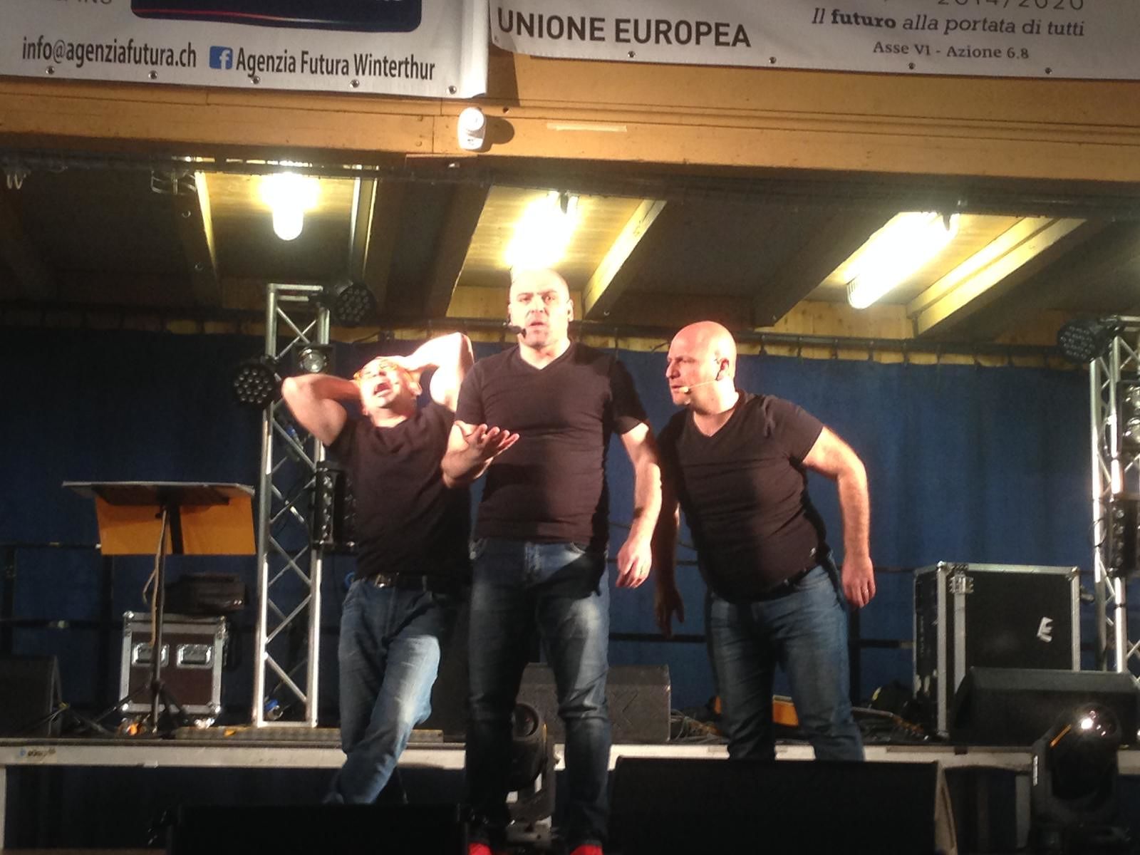 L’entusiasmo salentino più autentico ha contaminato l’ordinatissima Svizzera con la comicità fresca e originale degli Scemifreddi. Le demenziali pantomime, trascinanti e mai banali, di Cristiano Nobile, Anthony Fracasso e Tonio Rollo, con le loro battute brillanti, hanno fatto divertire con garbo un pubblico rapito dall’inizio alla fine dello spettacolo.