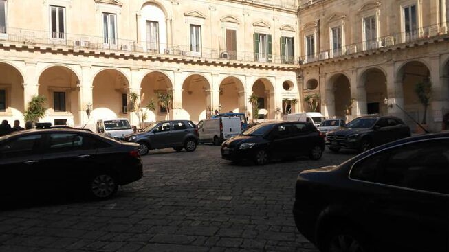 «A Lecce si odono o si leggono lamentele per la carenza di parcheggi pubblici, ma ne esiste uno, affatto risicato, nell’ampio atrio di un edificio artistico/monumentale del centro storico». Inizia il modo ironico la segnalazione di un cittadino a cui non sono passate inosservate le auto in sosta a Palazzo dei Celestini, un ‘gioiello’ nel cuore del centro storico del capoluogo barocco dove si affacciano gli uffici della Provincia di Lecce e della Prefettura.