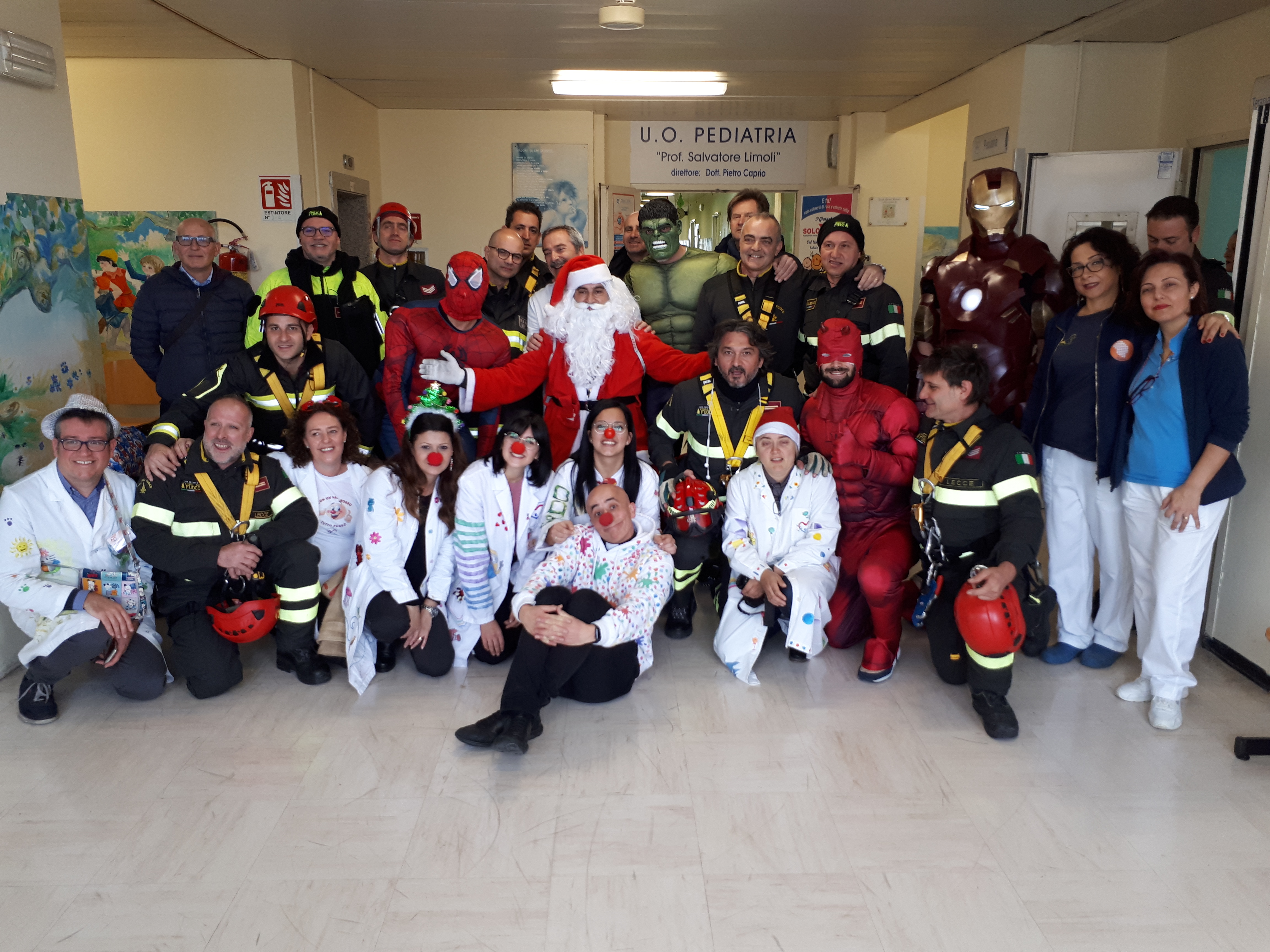 «Per l’ennesimo anno ringrazio Don Gianni, Franco e gli amici dei Vigili del Fuoco per questa bellissima iniziativa che ormai è diventata una tradizione per la nostra Pediatria. Per i bambini che stupiti hanno visto scendere Babbo Natale, è stata un’emozione bellissima. Un bel momento soprattutto perché alcuni sono ricoverati da diversi giorni» ha dichiarato Pietro Caprio, direttore responsabile dell’Unità Operativa di Pediatria.