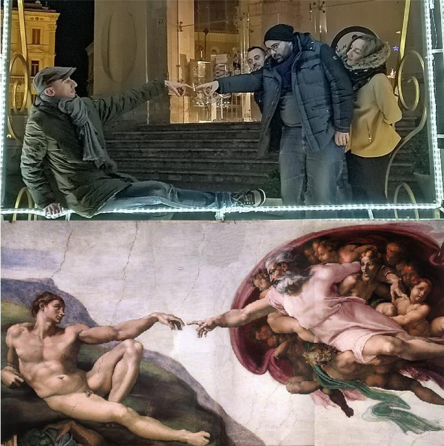 Poi l’idea di realizzare con i suoi amici – Annachiara, Francesco, Simone, Giuseppe e Simone – un calendario originale con le foto che ‘ricreassero’ in qualche modo le opere d’arte. Nessuna pretesa di creare un ‘capolavoro’, nessuna presunzione di essere perfetti, anzi. È l’ironia il filo conduttore degli scatti. Ecco quindi la mano con sfera riflettente, l’opera più nota di Maurits Cornelis Escher. Un autoritratto, anzi un selfie, dell’artista olandese realizzato qualche secolo fa, nel 1935.