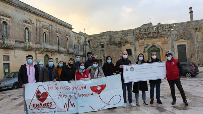 La consegna del ricavato al Presidente Carmine Cerullo è avvenuta con una cerimonia che si è tenuta in piazza San Nicola, nel rispetto delle norme previste per evitare la diffusione del Covid19.