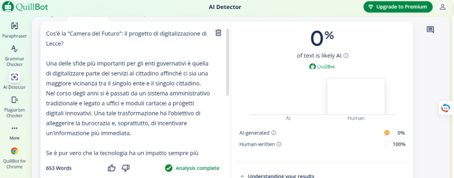 Il progetto prevede, ovviamente, la digitalizzazione dei processi interni, dei servizi e l’implementazione di strumenti tecnologici orientati all’utente. Ciò che rende questo progetto avanguardistico è l’inserimento dell’intelligenza artificiale a supporto dell’utente 24 ore su 24. L’assistente virtuale è capace di fornire risposte immediate e accurate a chiunque richieda il suo supporto online.