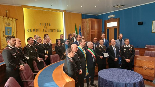 Si è svolta ieri, presso l’Aula Consiliare del Comune di Campi Salentina, la cerimonia di encomio dedicata al Comando Compagnia Carabinieri locale. Un riconoscimento ufficiale per l’alto coraggio e la professionalità dimostrati durante il drammatico assalto al portavalori avvenuto lo scorso 9 febbraio lungo la SS613 Brindisi-Lecce.