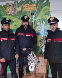Gli uomini in divisa, infatti, hanno donato ai bambini ricoverati e agli ospiti della struttura quaranta uova di coccolato “personalizzate” con il Logo dell’Arma dei Carabinieri e altri regali, doni dei militari per cercare di mettere in pausa, almeno per un po’, le paure, allontanare per un attimo i timori e regalare ai bambini e ai loro genitori una sensazione di festa.