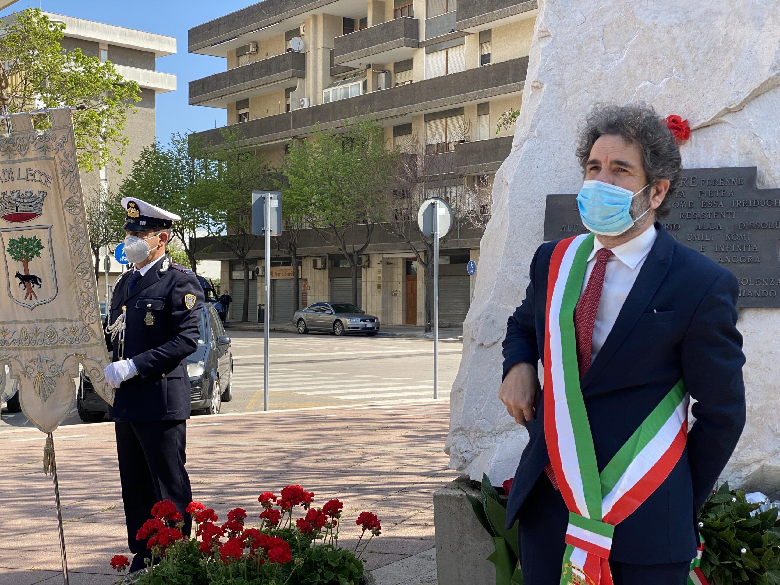Un 25 aprile decisamente diverso dal solito. In piena emergenza sanitaria legata al nuovo coronavirus, anche Lecce smorza i toni per le celebrazioni della Festa della Liberazione: una cerimonia sobria in Piazza Partigiani dove a prendersi la scena sono state soprattutto le mascherine sui volti di tutti.