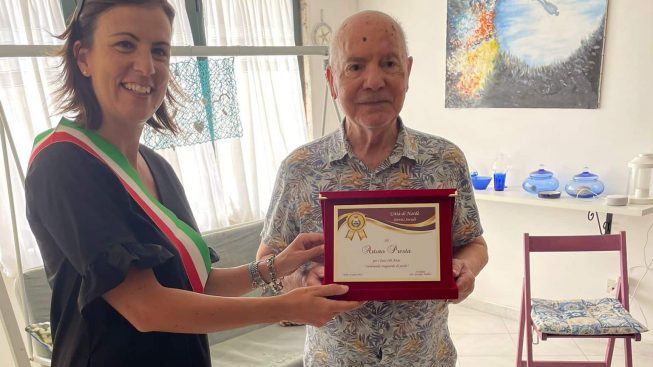 La vita lo ha portato lontano dal Salento, ma ogni anno torna a casa, a Santa Maria al Bagno, dove trascorre l’estate. E nella bellissima frazione del comune di Nardò Arturo Presta, originario del posto, ma milanese d’adozione ha tagliato l’importante traguardo dei 100 anni, un compleanno festeggiato circondato dall’affetto dei due figli e dei nipoti. Anche il vicesindaco Maria Grazia Sodero gli ha portato il saluto dell’amministrazione comunale e di tutta la città, perché soffiare su così tante candeline è sicuramente un vanto e un orgoglio.
