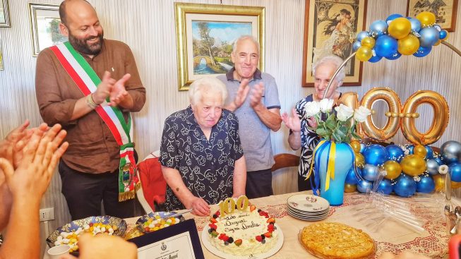 Cento anni sono un traguardo importante, da festeggiare tutti insieme. Così è stato anche Amelia De Carlo che emozionata e sorridente ha ricevuto l’abbraccio dei familiari, ma anche del Sindaco, dell’amministrazione Comunale e dei vicini di casa che hanno voluto condividere con lei la gioia per aver raggiunto il secolo di vita.