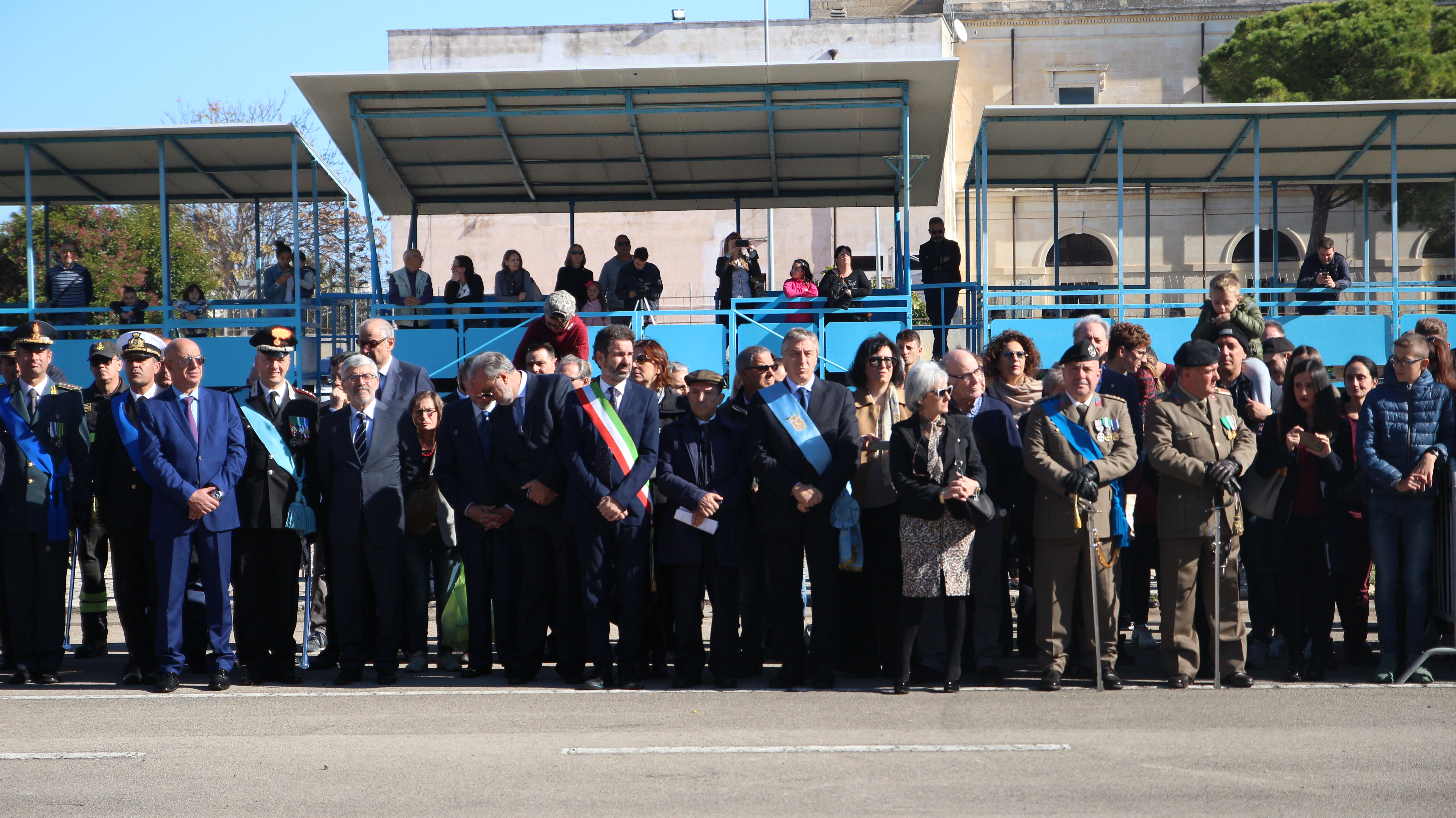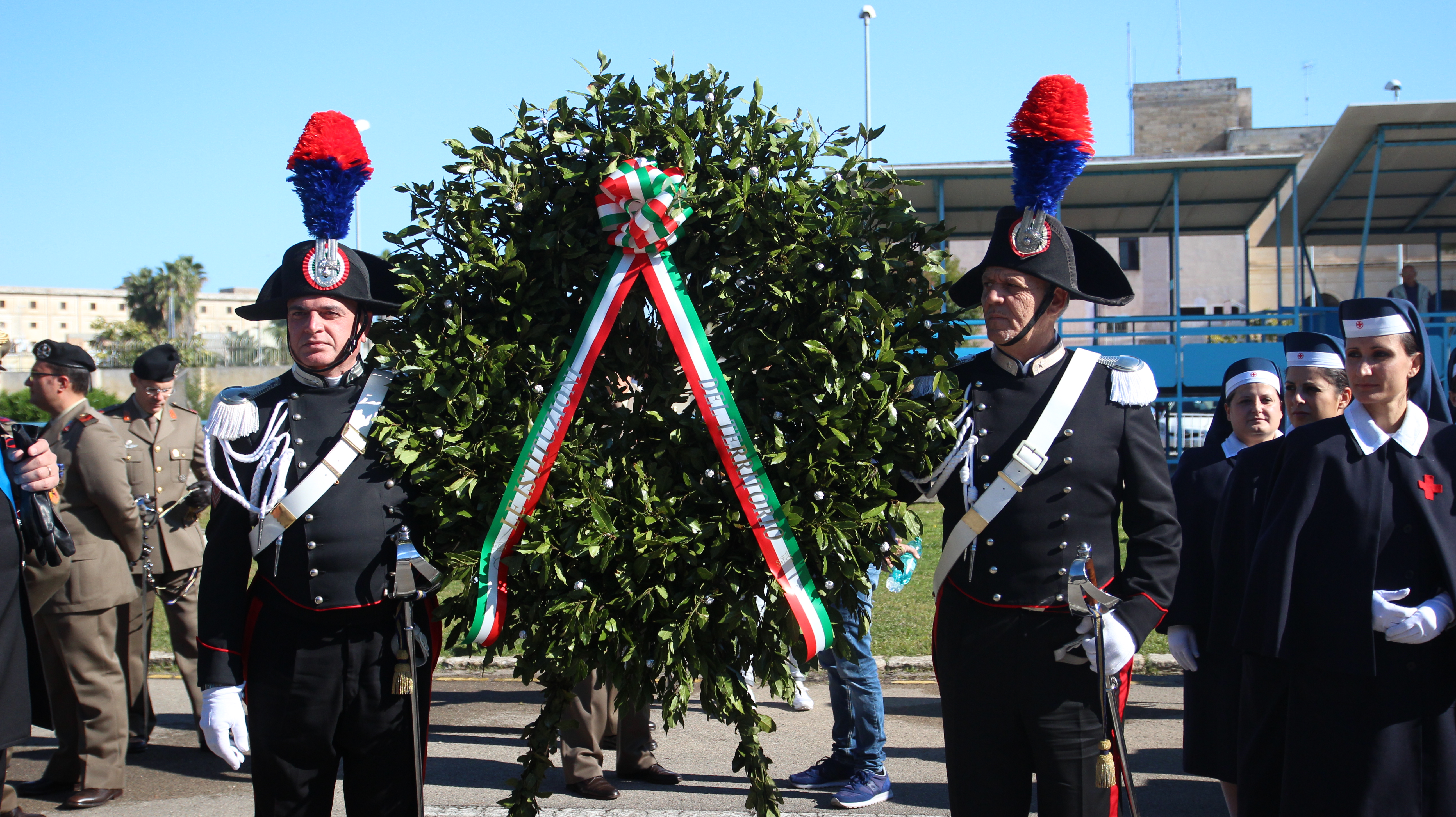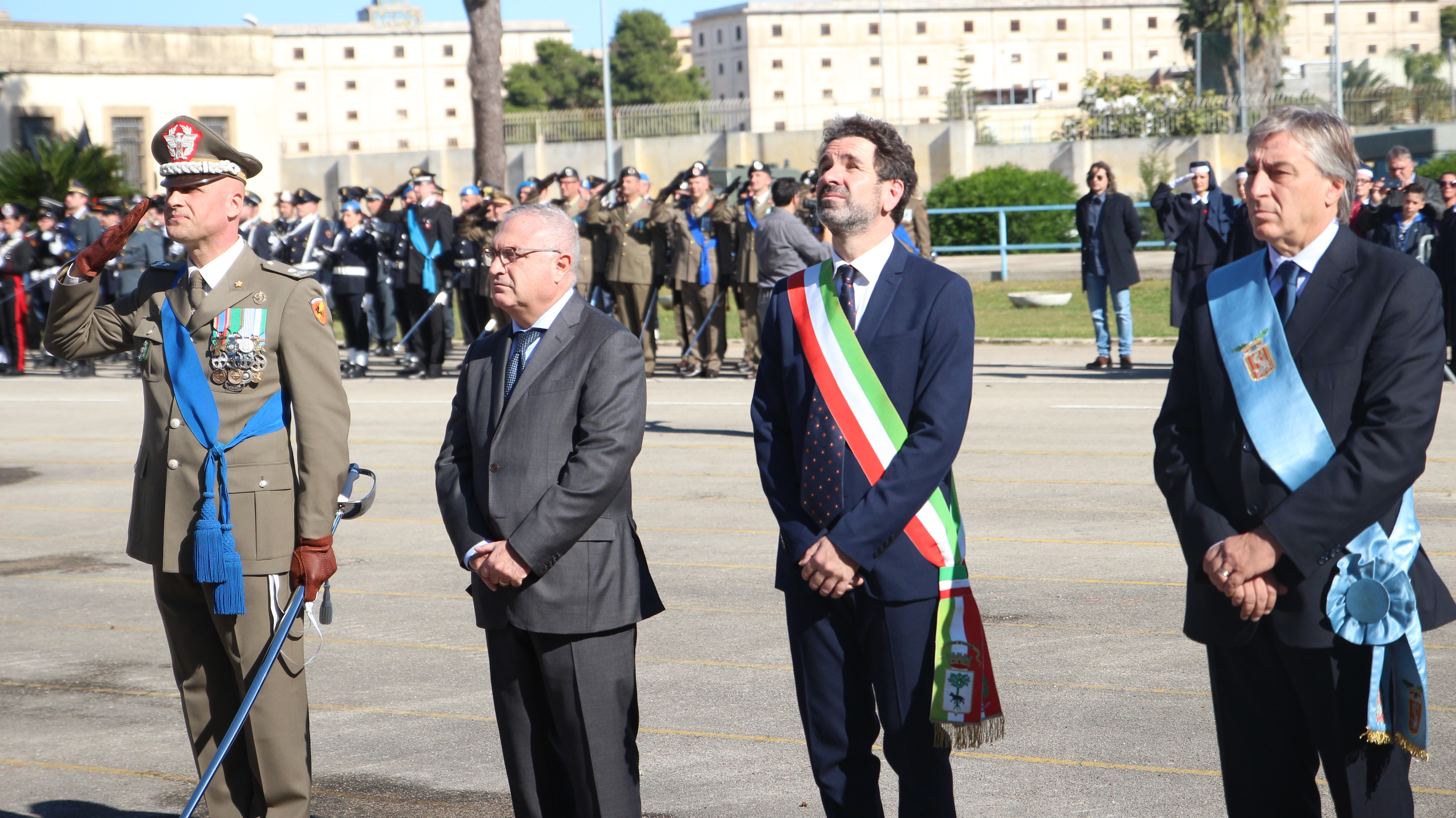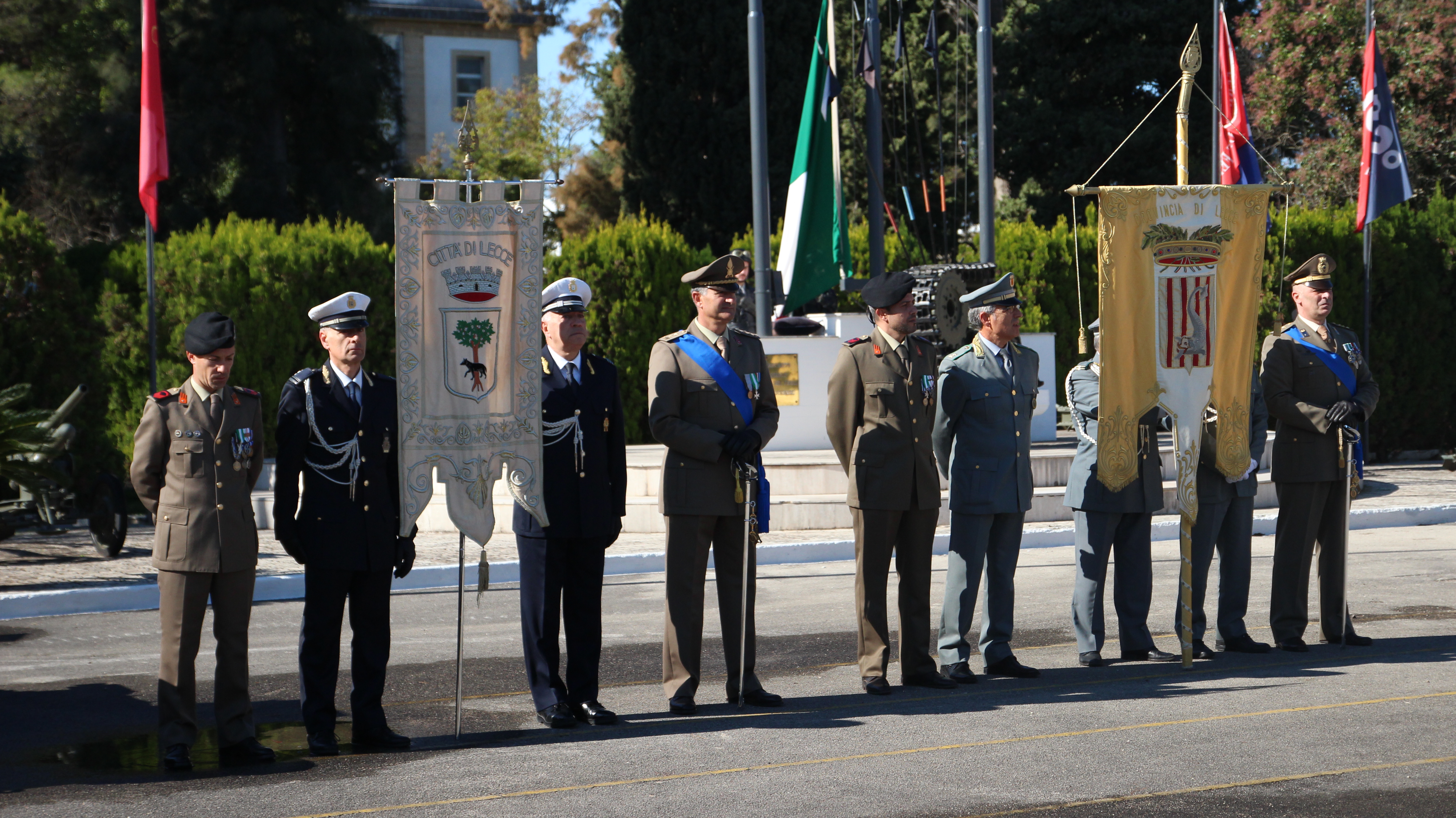 Dopo la Santa Messa, appuntamento presso la Scuola di Cavalleria della caserma Zappalà dove si è tenuta la celebrazione della Vittoria: alla cerimonia dell’alzabandiera, a rendere onore ai caduti e alla deposizione delle corone, hanno preso parte le autorità del territorio, con in testa il Prefetto della Città Claudio Palomba, sindaco di Lecce Carlo Salvemini e il Presidente della Provincia Antonio Gabellone.