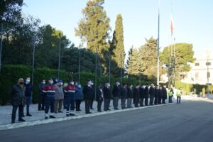 Alla cerimonia erano presenti i Presidenti e i rappresentanti di tutte le associazioni federate del Consiglio nazionale permanente delle Associazioni d’Arma (conosciuto anche come Assoarma) che in questi primi 8 mesi hanno collaborato al servizio presso l’hub vaccinale. A premessa della cerimonia di consegna degli attestati, il Presidente della Sezione di Lecce di ASSOARMA, Generale in quiescenza Emanuele Lasalandra, insieme al Comandante della Scuola di Cavalleria, Generale di Brigata Claudio Dei, ha voluto rendere omaggio ai caduti, deponendo un mazzo di fiori presso il sacello dedicato ai martiri della Cavalleria.