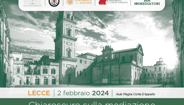 Si svolgerà a Lecce, venerdì 2 febbraio, presso l’Aula Magna della Corte d’Appello di Lecce, il convegno dal titolo “Il chiaroscuro della mediazione all’indomani della Riforma” dedicato agli aspetti della mediazione che, in questa fase di transizione segnata dalla Riforma Cartabia, si rivelano di particolare interesse per tutti gli operatori del Sistema Giustizia.