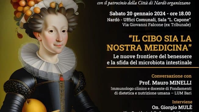 Sarà questo, quindi, l’argomento che sarà trattato nel corso dell’incontro dal titolo “Il cibo sia la nostra medicina”, le nuove frontiere del benessere e la sfida de microbio tra intestinale, che si svolgerà sabato 20 gennaio, alle ore 18.00, presso la Sala “L. Capone” degli Uffici Comunali, in via Giovanni Falcone, a Nardò