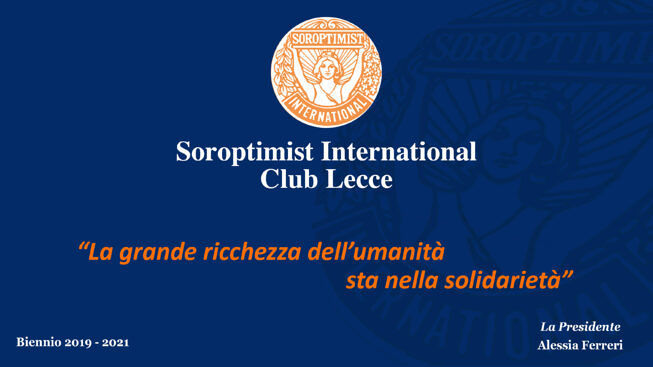Il Soroptimist Club grazie contributo delle socie, ha realizzato al momento due service pro covid19 che consistono, il primo, nella donazione di generi alimentari in favore di oltre 100 famiglie in situazione di necessità e rischio di emarginazione sociale per il tramite delle parrocchie, in questa prima battuta, di San Giovanni Battista e San Lazzaro e, la seconda, l’ordinativo, in arrivo, di 300 mascherine del tipo Ffp2, che rappresentano il “primo filtro” tra il paziente affetto dal virus e il sistema sanitario, da distribuire agli operatori dei consultori familiari di lecce, agli operatori socio-sanitari di alcune case di cura per anziani, agli operatori socio-assistenziali di centri che ospitano minori e associazioni assistenziali per i senzatetto che svolgono un’attività in favore di persone in condizioni di fragilità, ritenendola misura di fondamentale importanza per tutelare la sicurezza individuale e collettiva ed arginare l’eventuale contagio.
