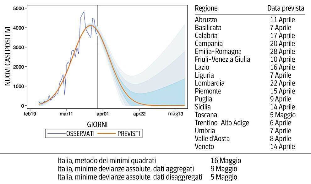 Una premessa è doverosa e non deve essere assolutamente sottovalutata. Si tratta di ‘previsioni’ che possono cambiare da un giorno all’altro. Per questo, è necessario seguire la tendenza nazionale e prendere le ‘estrapolazioni’ come un’idea di dove stiamo planando con le misure di contenimento come ha dichiarato Luigi Guiso, fra gli economisti italiani più influenti nel mondo.