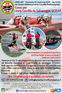 Elementi questi che saranno affrontati e valutati nel corso di formazione e per il rilascio del brevetto operativo di Unità Cinofile da Salvataggio.