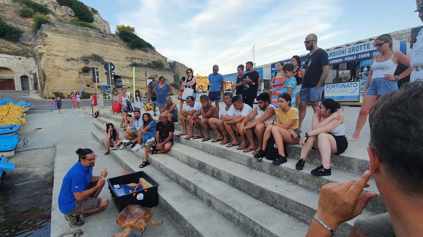 Nella meravigliosa location del porticciolo di Enea di Castro Marina, si sono svolte le procedure del primo appuntamento dell’iniziativa, in cui sono state evidenziate dagli operatori del Centro, le principali nozioni di primo intervento da adoperare in caso di cattura di una tartaruga.