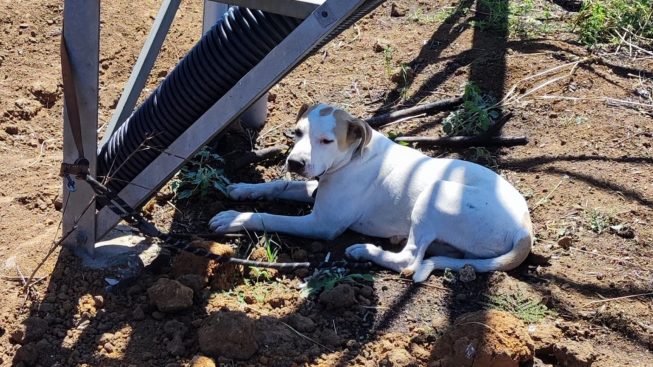 Brutta disavventura per un cucciolo di pitbull di circa otto mesi. Il cane, infatti, era stato abbandonato e legato a un traliccio della corrente elettrica in una stradina chiusa e in aperta campagna a Nardò.