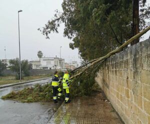 Alberi caduti, ancora, a San Donato dove sono stati messi in sicurezza quattro pali della telefonia, a Cavallino, a Maglie, dove è crollato anche un muretto, a Castro e Minervino, dove sono venuti giù alcuni pali Telecom.
