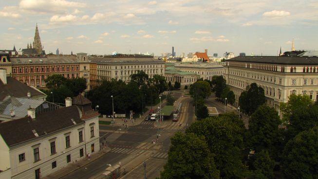 Era mezzogiorno ed era tempo di ritornare alla magnifica Vienna, che non potevo lasciare così, senza visitarla almeno un altro pomeriggio. Dopo una chiacchierata abbastanza lunga e completa con un funzionario italiano del campo, sono ritornato indietro, verso la capitale austriaca, dove ad attendermi c’era Marianna, la ragazza conosciuta a Copenaghen, ormai mia amica. Mi ha accompagnato a spasso per il centro, poi sulla terrazza di un edificio dal quale si vedeva il panorama cittadino, poi a mangiare un gelato e poi in un parco. Visitare la città da solo mi dà una sensazione di libertà, ma visitarla con qualcuno mi dà allegria, soprattutto se è una locale, amplia ciò che posso conoscere perché mi dare risposta ai dubbi che si formano e posso ascoltare le curiosità degli edifici e dei luoghi più importanti… in altre parole, mai mi sarebbe venuto in mente di salire su quell’edificio, gratuitamente, e osservare Vienna dall’alto, se non fosse stato per quella ragazza.