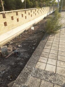 I problemi, però, non riguardano solamente l’interno della struttura, perché, nelle vicinanze è anche presente un parco. Qui, sono presenti moltissime sterpaglie e l’illuminazione è scarsa e potrebbero causare gravi danni ai frequentatori. A questo si aggiungono alcuni tombini divelti che potrebbero anche causare la caduta dei passanti.