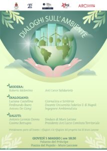 Tutto pronto a Muro Leccese, dove, domani, giovedì 5 maggio, presso la splendida cornice di Palazzo del Principe in Piazza del Popolo andrà in scena l’evento “Dialoghi sull’ambiente.