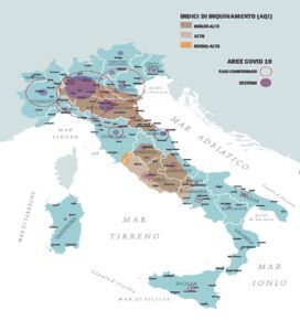“Proprio partendo dall’analisi condotta negli Stati Uniti, è plausibile supporre che il diverso andamento geografico dei contagi in Italia abbia seguito i livelli di inquinamento. Il gruppo di Harward, coordinato dalla dottoressa Francesca Dominici, attribuisce grande rilevanza al PM2.5, un miscuglio di sostanze solide e liquide del diametro inferiore ai 2,5 micron, circa 35 volte più piccole di un granello di sabbia fine, derivanti dalla combustione di carburanti per autoveicoli, da raffinerie e centrali elettriche, dalla combustine di materiali legnosi o di qualunque altro materiale a seguito di incendi, ma anche dal fumo di tabacco”.
