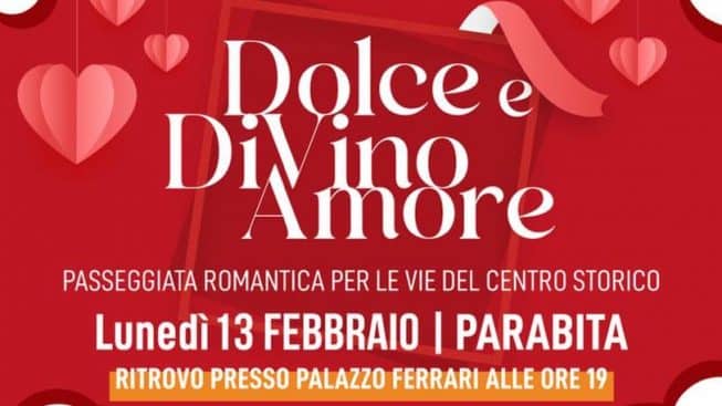Si terrà domani, 13 febbraio, alle ore 19.00, la passeggiata romantica che porterà numerose coppie alla scoperta delle bellezze di Parabita. L’evento, che è già andato sold-out, sarà un percorso culturale che abbraccerà storia, musica ed enogastronomia. A curare la manifestazione è l’Associazione Culturale “Progetto Parabita”.