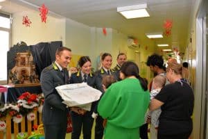 Nell’occasione i militari sono stati accolti dalla Dottoressa Lucia Russo e dalla Professoressa Flavia Indrio e dal loro staff e dai Cappellani del presidio ospedaliero Don Gianni Mattia e Don Angelo Rizzo, che hanno ringraziato la Guardia di Finanza, sottolineando l’importanza di questi gesti che alleviano la sofferenza dei piccoli pazienti soprattutto in prossimità delle festività natalizie.