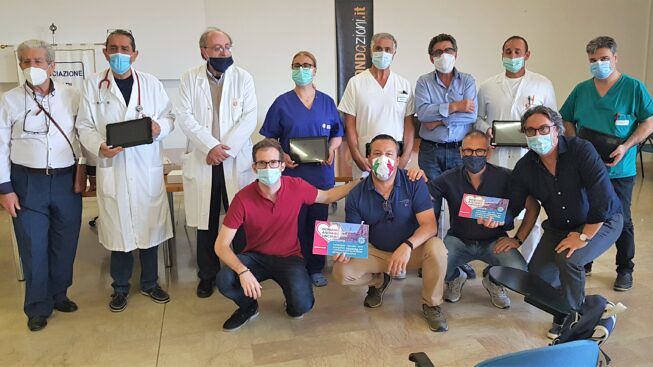 La cerimonia di consegna si è svolta, presso la Sala stampa dell’Ospedale Santa Caterina Novella di Galatina alla presenza del Direttore Medico Giuseppe De Maria, dei Responsabili delle Unità Operative a cui è stato consegnato i tablet, dei rappresentanti delle associazioni e delle aziende che hanno contribuito alla raccolta fondi.
