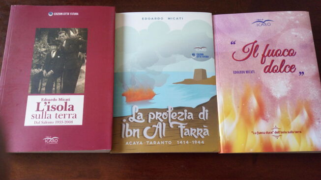 Ci sarebbe ancora molto da scrivere sui libri che portano la sua firma: non si può tralasciare “La profezia di Ibn al Farrà”, ambientato tra Acaya e Taranto e nato un po’ per caso, come sempre succede per le grandi opere.