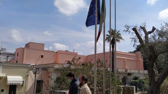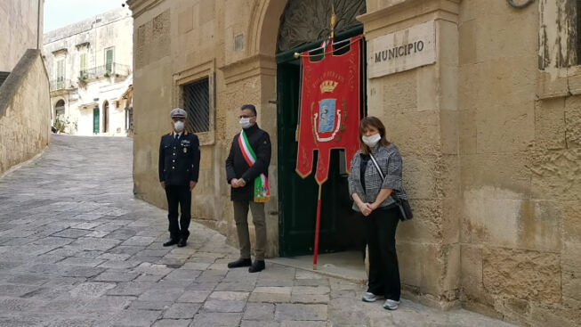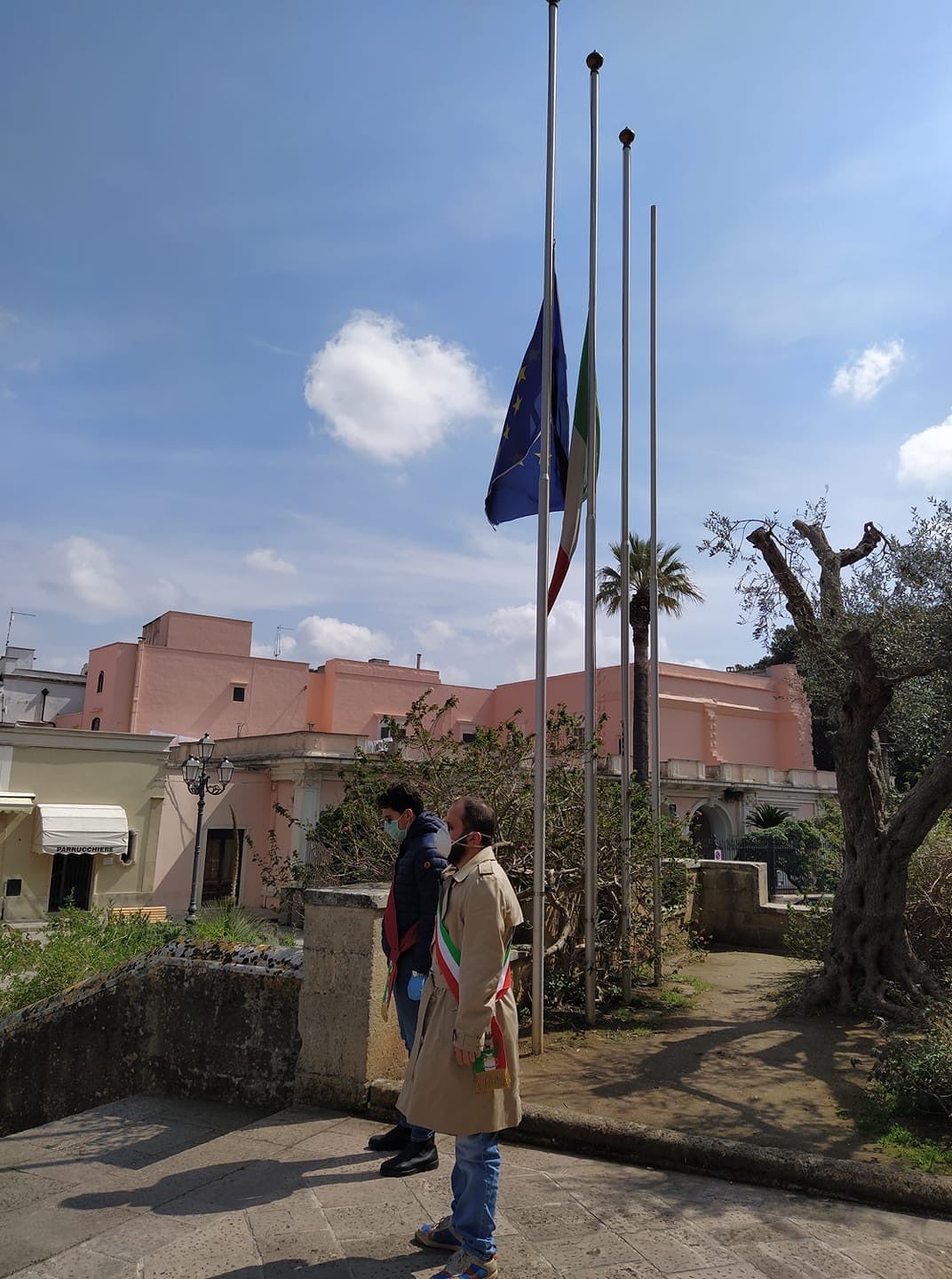 Nell’aria le note di Tito Schipa. In lontananza il suono delle campane direttamente da Piazza del Duomo. Per le strade, invece, silenzio assordate. Anche a Lecce questa mattina si è tenuta la cerimonia della bandiera a mezz’asta per commemorare le vittime dell’epidemia Coronavirus.
