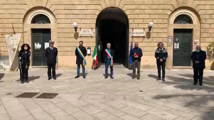 Anche a Lecce il Sindaco Carlo Salvemini ha osservato la cerimonia, in rigoroso silenzio, ai piedi di quella che storicamente è l’entrata principale di Palazzo Carafa. In un messaggio postato su Facebook il primo cittadino del capoluogo aveva scritto: