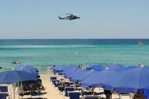 Molto probabilmente i bagnanti presenti sulla spiaggia avranno pensato a qualche importante operazione di salvataggio, vista la quantità dei mezzi impiegati, fortunatamente non era così, perché si è trattato di una simulazione.