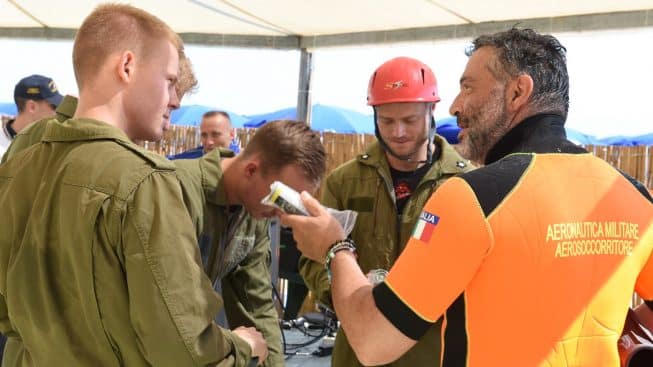 L’occasione è stata propizia anche per verificare e consolidare le procedure di recupero degli equipaggi in acqua: l’esercitazione ha infatti coinvolto un elicottero HH-139A e il personale “aerosoccorritore” dell’84° Centro CSAR (Combat, Search and Rescue) di Gioia del Colle.