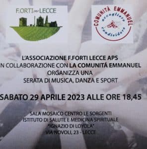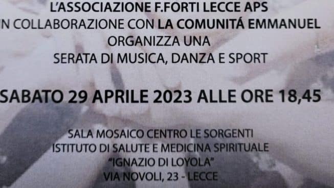 Sarà dedicata a Padre Mario la serata organizzata dall’Associazione F.orti Lecce APS, in collaborazione con la Comunità Emmanuel. Il ricavo della serata, prevista per il 29 Aprile, sarà devoluto ai ragazzi diversamente abili e in difficoltà della Comunità. Dalle ore 18.45 la serata sarà animata musica, danza e sport. Ad ospitare l’evento sarà la Sala Mosaico del centro “Le Sorgenti”.