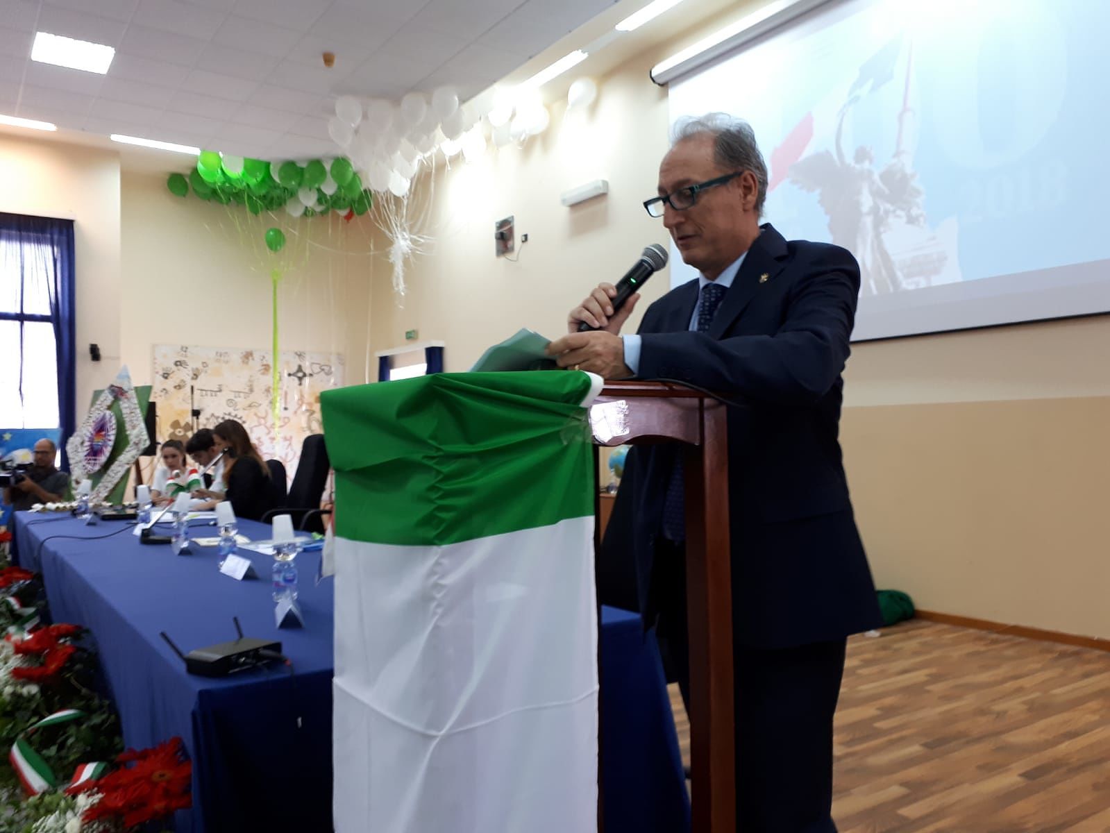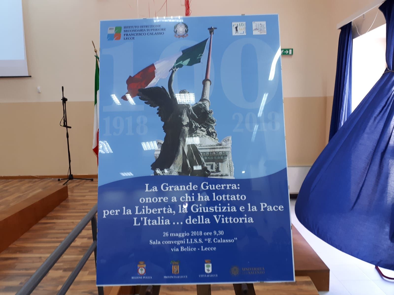 I palloncini “tricolore” accoglievano studenti, professori ed autorità militari, politiche, istituzionali; quasi a voler ribadire il concetto di unità al di là della carica ricoperta. L’ha voluto ricordare l’Istituto “F. Calasso” di Lecce attraverso l’evento – tenutosi stamattina presso la Sala Convegni della scuola situata in via Belice – intitolato “La Grande Guerra: onore a chi ha lottato per la Libertà, la Giustizia e la Pace. L’Italia…della Vittoria”.